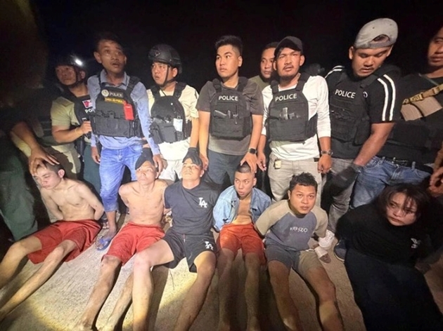 | Các nghi phạm khi bị bắt hôm 18/11. Ảnh: Khmer Times |