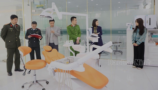 Cụ thể, Đoàn kiểm tra liên ngành Y tế và Công an tỉnh Bắc Ninh đã tiến hành kiểm tra các thủ tục hồ sơ pháp lý theo quy định của pháp luật như: Giấy phép hoạt động; danh mục kĩ thuật được phê duyệt; danh sách người hành nghề; danh mục trang thiết bị; tài liệu chứng minh đủ điều kiện phòng cháy, chữa cháy, kiểm soát nhiễm khuẩn và kiểm tra trực tiếp điều kiện hoạt động tại cơ sở thẩm mỹ.