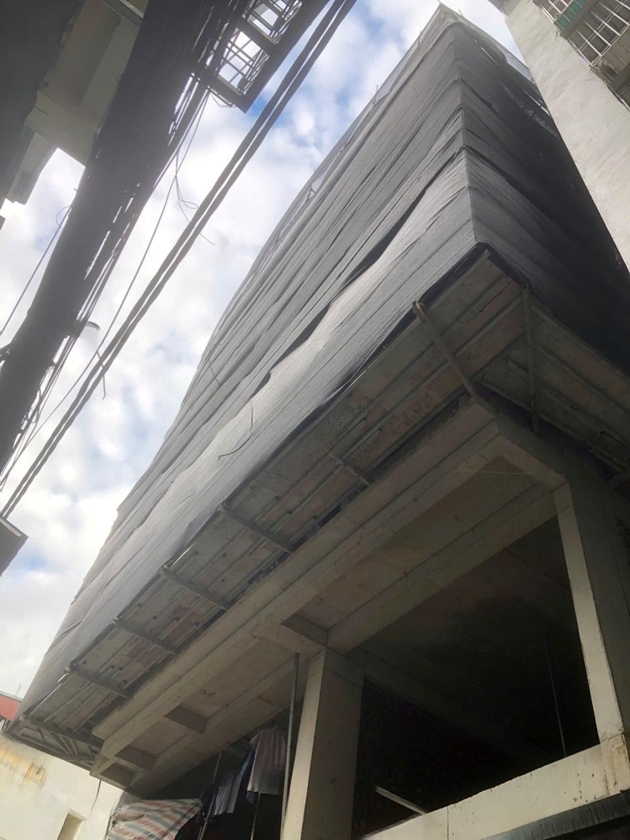 Từ tầng 3 trở lên phần sàn xây dựng nhô ra ngoài không gian chung khoảng 1,5m vi phạm trật tự xây dựng nghiêm trọng |
