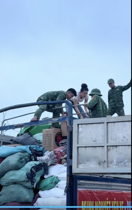 Đoạn clip lan truyền trên mạng xã hội ngày 1/12 ghi lại khoảnh khắc cô gái trèo lên thùng xe, cùng lực lượng cán bộ địa phương hạ đồ cứu trợ để phát cho người dân miền Trung sau mưa lũ, thu hút khoảng 2,2 triệu lượt xem.