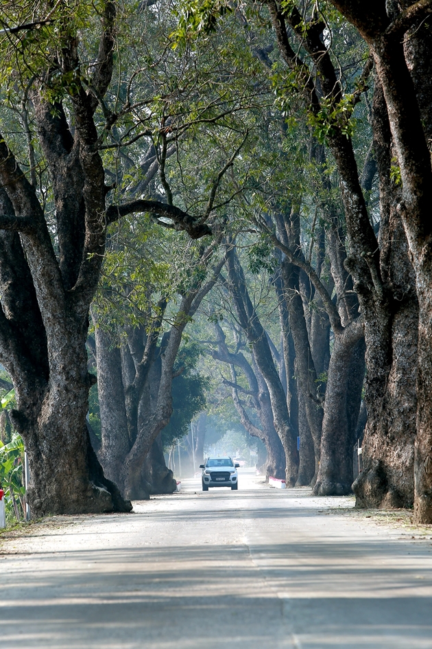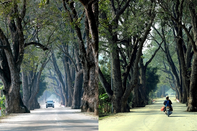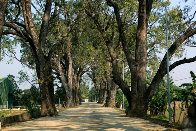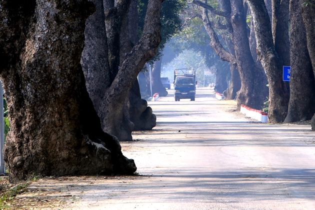 | Trải qua hơn 100 năm, hai hàng cây vẫn xanh tốt, cành lá sum suê, tỏa bóng mát rợp. |
