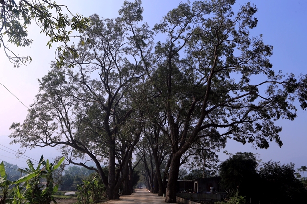 Ngắm hàng cây xà cừ trăm năm hiếm có ở làng quê xứ Thanh