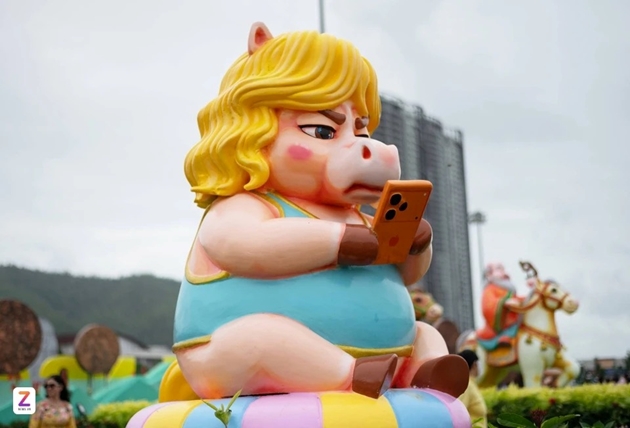 Không chỉ dừng lại ở những tạo hình mang tính biểu tượng truyền thống, nhiều địa phương lựa chọn cách tiếp cận sáng tạo hơn. Tại Quy Nhơn (Bình Định), mô hình ngựa đang "lướt iPhone 17 Pro Max" với biểu cảm "cọc" dí dỏm. Sự phá cách nhận nhiều phản ứng tích cực từ mạng xã hội, đặc biệt là giới trẻ. Không ít Fanpage lớn, nhỏ chia sẻ lại, tạo làn sóng tìm đến tượng check-in. Ảnh: Xuân Sang.