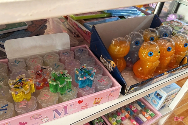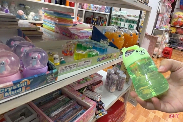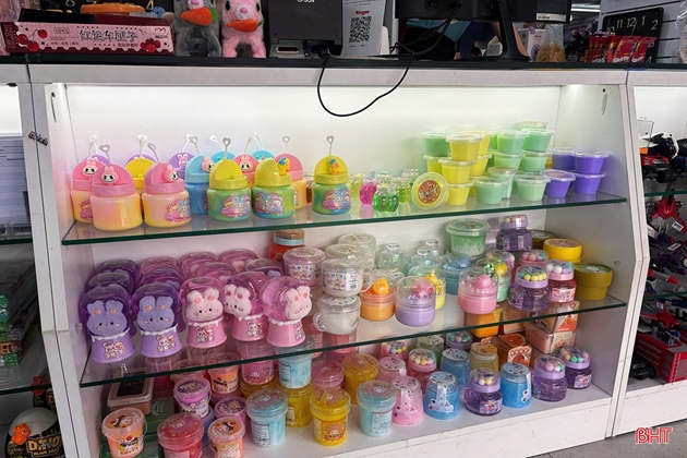 | Slime được bày bán tràn lan tại phường Thành Sen, tỉnh Hà Tĩnh. |