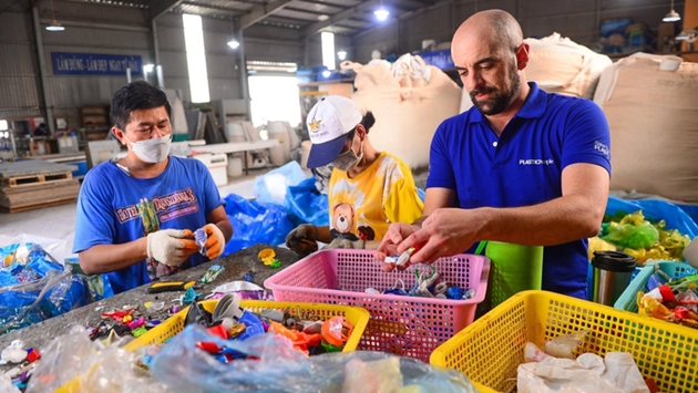 | Trong hơn hai năm qua, 650 tấn rác nhựa sau tiêu dùng như chai, ly, hộp nhựa, túi ni lông… đã được Công ty Plastic People tái chế 100% - Ảnh: QUANG ĐỊNH |