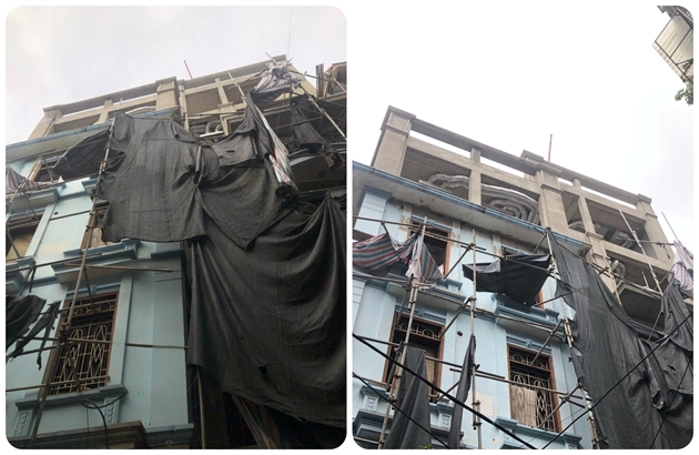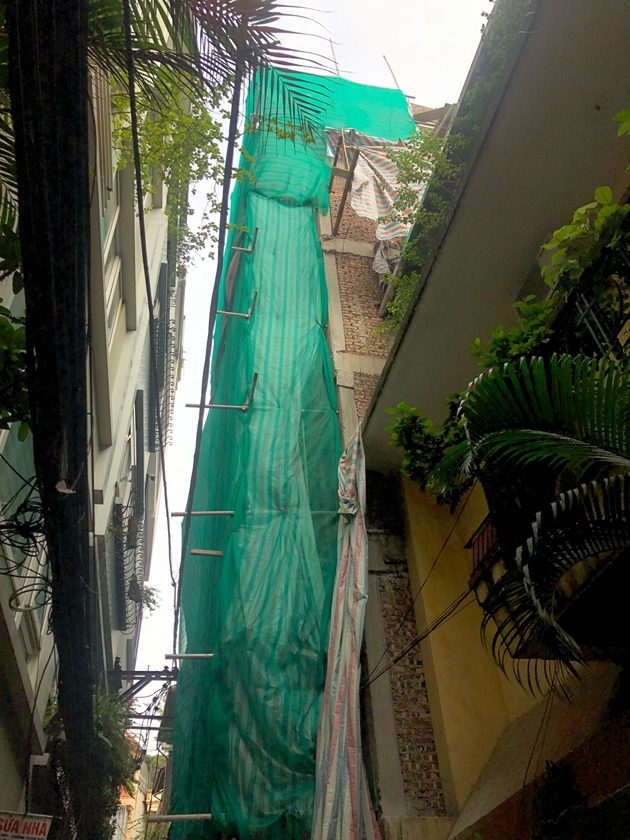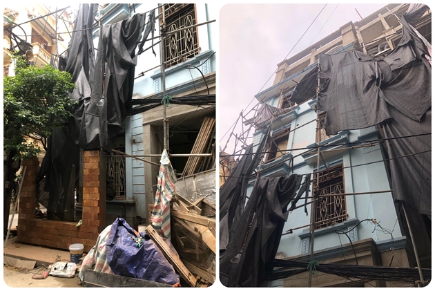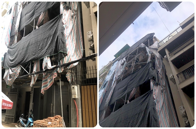 02 ngôi nhà cạnh nhau với đang được đầu tư tiến hành cải tạo, sửa chữa, xây dựng mới thêm tầng, thay đổi kết cấu, không gian sử dụng của ngôi nhà, 02 ngôi nhà này tiến hành cải tạo, xây dựng nhiều hạng mục công trình và đặc biệt trên cùng là những tầng được xây dựng mới với khoảng 2 tầng, trong quá trình thi công, công trình không được che chắn cẩn thận, tiềm ẩn ngạch vữa rơi từ trên cao xuống đường gây nguy hiểm cho người đi lại bên dưới.