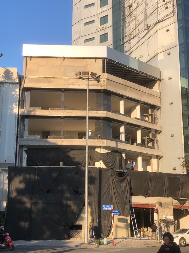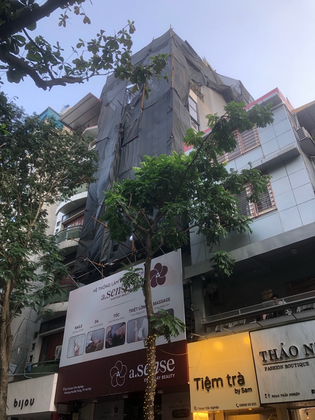 Tiếp đó, ngôi nhà có địa chỉ số 5 Phố Đoàn Trần Nghiệp đang được xây dựng mới thêm 2 tầng trên cùng; từ hiện trạng cũ là một ngôi nhà có chiều cao khoảng 6 tầng tương đương với những ngôi nhà xung quanh nhưng nay được xây dựng thêm 2 tầng mới, cả số tầng cũ và mới đã giúp cho ngôi nhà có chiều cao vượt trội hơn nhiều những ngôi nhà khác ở cùng tuyến phố.