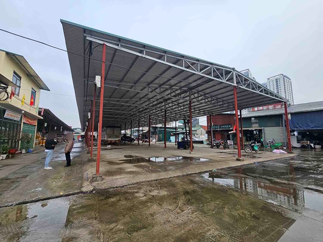 | 3 dãy ki-ốt được dựng lên bằng khung sắt, lợp tôn. Ảnh: Nhóm PV |