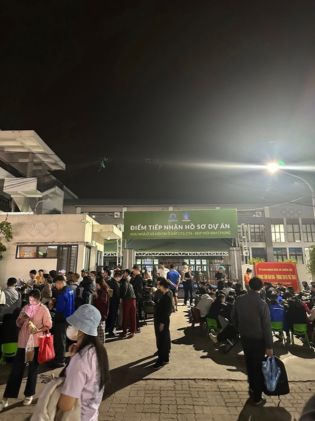 Từ 20h ngày 16/11, hàng trăm khách hàng đã có mặt tại Trung tâm Văn hóa- Thông tin thể thao xã Thiên Lộc (địa điểm tiếp nhận hồ sơ) để chờ lấy số nộp hồ sơ mua, thuê mua nhà ở xã hội (NOXH) CT3 Kim Chung (xã Thiên Lộc, Hà Nội).
