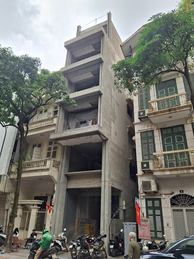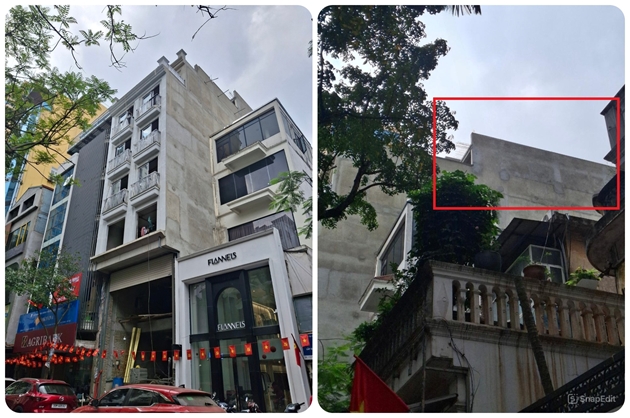 Ngôi nhà trên phố Phù Đổng Thiên Vương đang được chủ đầu tư xây dựng với quy mô khoảng 7 tầng, kèm tầng lửng và tầng tum. Qua quan sát, tầng lửng được thiết kế như một tầng hoàn chỉnh; phía trên, phần tum thang có kích thước lớn bất thường, thực chất đã bị “biến tướng” thành một tầng riêng, cùng với một tum kỹ thuật bổ sung, khiến tổng thể công trình có chiều cao vượt trội so với các ngôi nhà khác trên cùng tuyến phố.