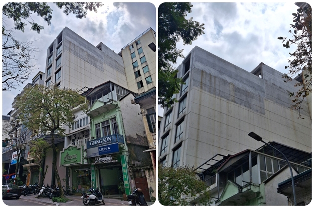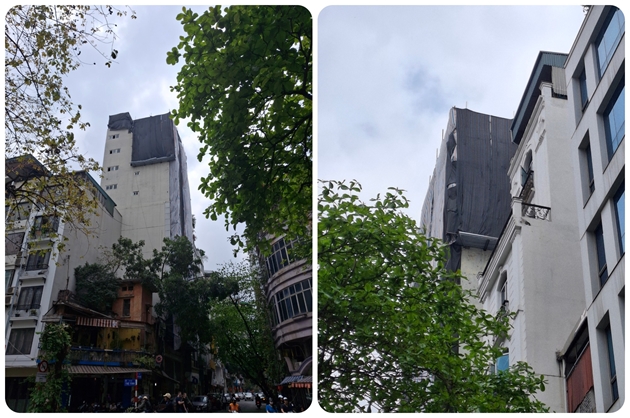 Một ngôi nhà khác có địa chỉ số 12 nằm ngay đầu phố Lê Ngọc Hân, phần mặt trước đang được chủ đầu tư cải tạo xây dựng mới khoảng 7 tầng, phần tum lớn bất thường bằng 2/3 sàn mái dưới, từ tầng 2 trở lên có dấu hiệu được thay đổi thiết kế phòng đua ra ngoài không gian chung của ngõ khoảng 1m, rất cần được kiểm tra.
