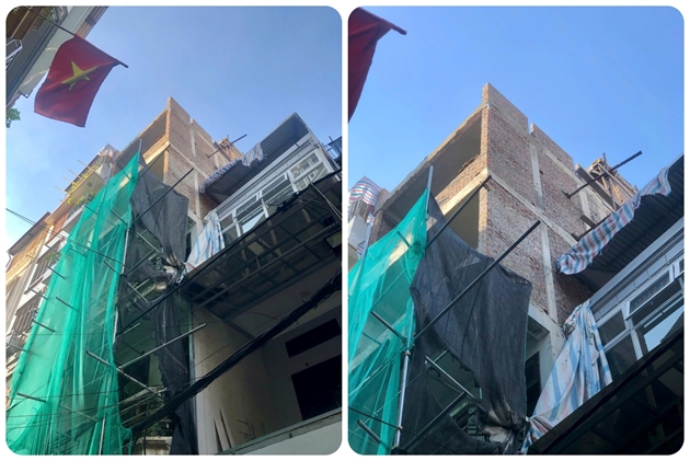 Tại khu vực có địa chỉ số 10 ngách 121/10 phố Chùa Láng: Công trình nhà ở riêng lẻ đang được cải tạo từ hiện trạng nhà 3 tầng cũ, được đầu tư xây cải tạo xây mới thêm tầng 4 và 5, hiện đang tiếp tục xây tầng 6, mật độ xây dựng sát nhà liền kề, gần như không có khoảng cách an toàn, tiềm ẩn nguy cơ về PCCC, an toàn xây dựng.