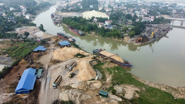 Theo phản ánh, cảng và bến bãi vật liệu xây dựng, nhà xưởng này thuộc xóm Đình Thông, thôn 1, xã Trung Giã, TP Hà Nội (giáp danh thôn Bình An, xã Trung Giã) trên đất nông nghiệp, lấn chiếm hành lang đê điều, nguy cơ ảnh hưởng xấu môi trường. Vật liệu xây dựng đưa về nghiền xả thải trực tiếp ra môi trường.