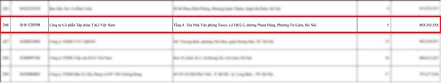Trong danh sách này, Công ty cổ phần Tập đoàn TAG Việt Nam bị "bêu tên" với 5 tháng chậm đóng bảo hiểm, tổng số tiền chậm đóng là hơn 803 triệu đồng.