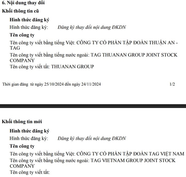 Đến tháng 10/2024, Công ty cổ phần Tập đoàn Thuận An - TAG chính thức đổi tên thành Công ty cổ phần Tập đoàn TAG Việt Nam. Hiện ông Trần Đức Khoa là Tổng giám đốc kiêm người đại diện pháp luật của doanh nghiệp này.