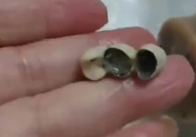 | Hai chiếc răng giả được tìm thấy trong một phần điểm tâm (Ảnh: South China Morning Post). |