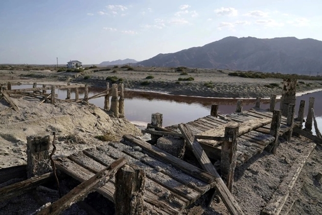 | Một bến tàu cũ đã khô cạn bên bờ Salton Sea, tháng 7/2021. Ảnh: AP |