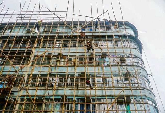 | Giàn giáo tre bên ngoài một tòa nhà. Ảnh: PH Yang/24HourProject |
