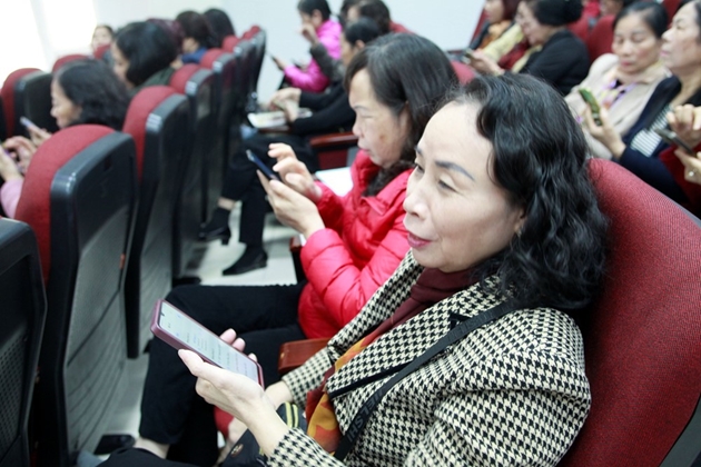 | Các cán bộ, hội viên phụ nữ tham gia tập huấn kiến thức về kỹ năng số trên các nền tảng dịch vụ số |