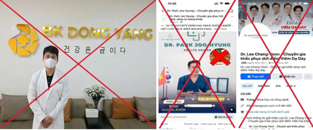 Các clip được đăng tải ồ ạt trên mạng xã hội, gắn tên các "chuyên gia nước ngoài" như: "Dr. Park Joo Hyung - Chuyên gia phục hồi chức năng cơ, xương, khớp", "Dr. Lee Chang-Yoon - Chuyên gia khắc phục viêm dạ dày", "Dứt hôi miệng - Chuyên khoa hôi miệng BK Dong Yang"… Đi kèm với đó là đội ngũ tư vấn viên trực tuyến luôn sẵn sàng nhắn tin, gọi điện mời chào, hứa hẹn các "gói điều trị không thuốc, không phẫu thuật, không đau - hoàn tiền nếu không khỏi".