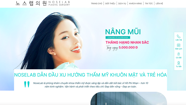 Thông tin quảng cáo dịch vụ nâng mũi tại website https://noselab.vn. |