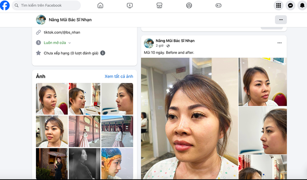 Trang facebook "Nâng Mũi Bác Sĩ Nhạn" liên tục đăng tải các hình ảnh về phẫu thuật nâng mũi. |