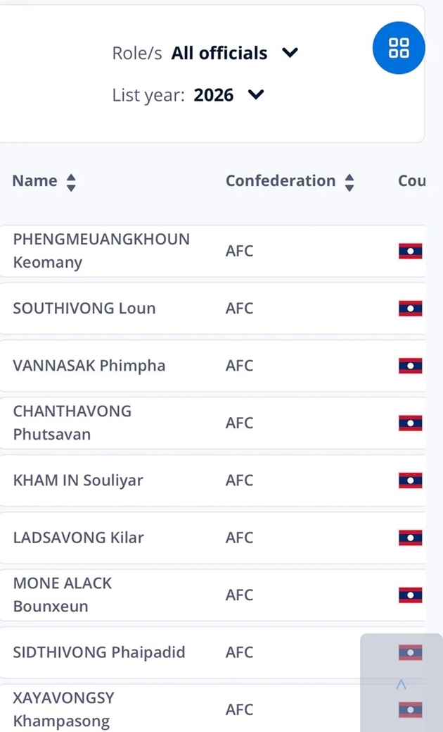 Trang chủ FIFA đã có thông báo quan trọng với nhiều trọng tài Lào và cá nhân Phutsavan Chanthavong trong năm 2026.