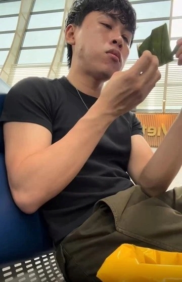 Cứ thế, tại khu vực chờ lên máy bay, anh lần lượt bóc từng chiếc bánh ra ăn. Tuy nhiên, đến chiếc thứ 30, anh đã no ngấy và không thể ăn tiếp, đành chấp nhận bỏ lại trăm chiếc bánh lại sân bay.