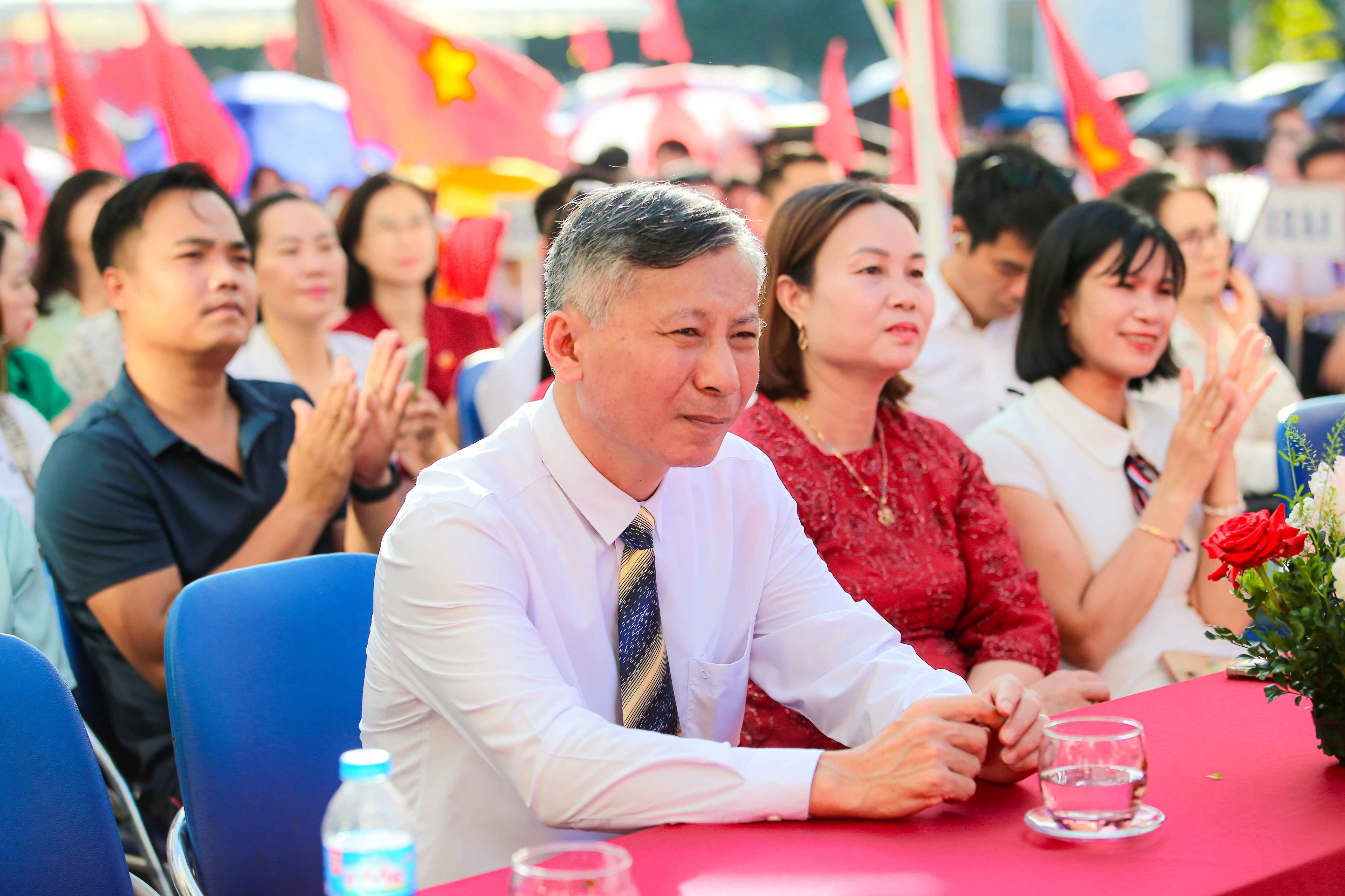 Thầy Đoàn Minh Châu, Bí thư chi bộ, Hiệu trưởng Trường THPT Xuân Phương tại buổi lễ khai giảng năm học mới sáng nay