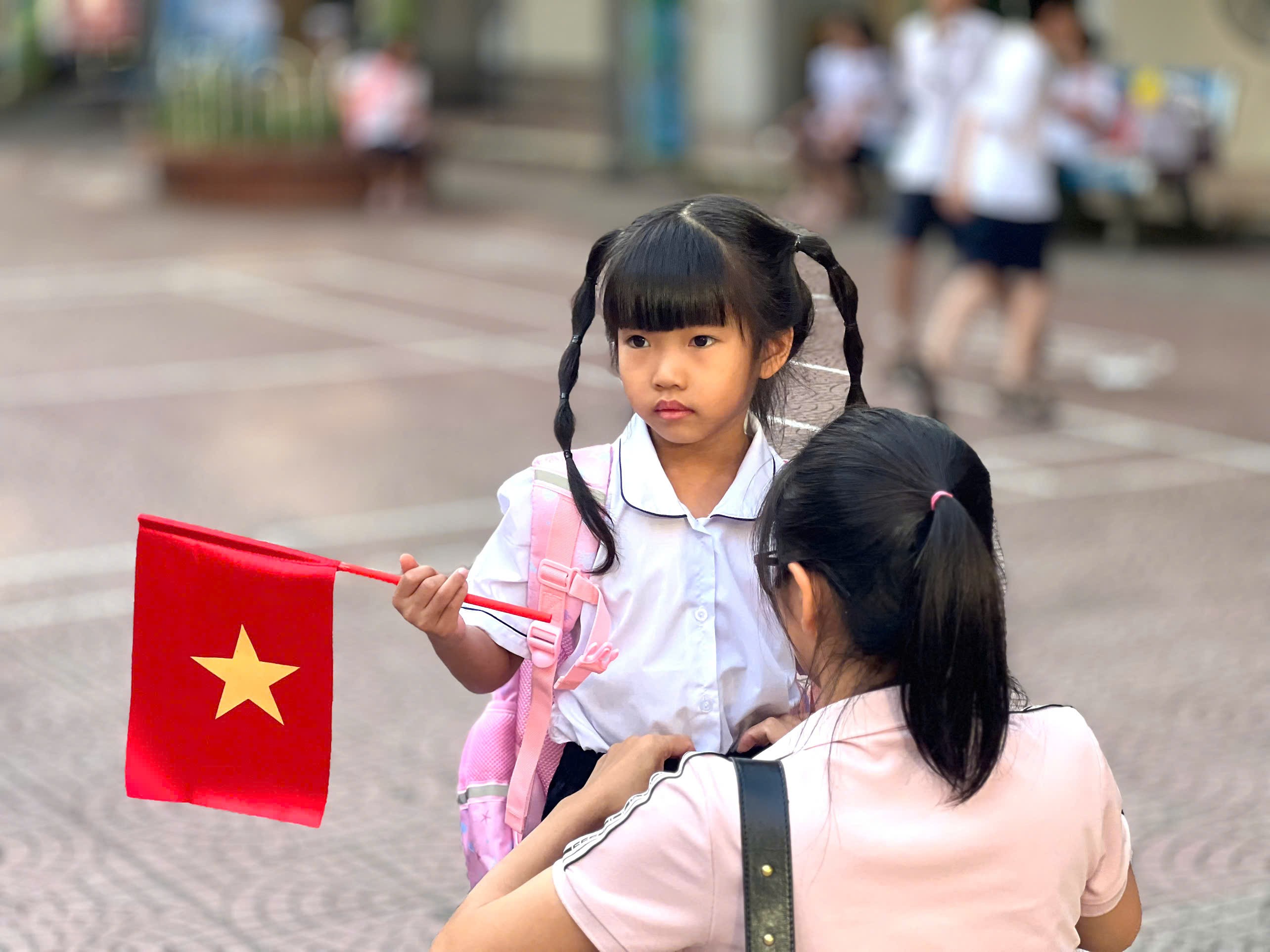 Sáng 5/9, tại nhiều trường, phụ huynh đưa con em tới từ rất sớmHọc sinh lớp 1 được thầy cô đón tiếp trong không khí trang trọng và ấm áp. Sau phần chào cờ, đọc thư chúc mừng năm học mới của Chủ tịch nước, hiệu trưởng các trường phát động phong trào thi đua năm học 2025 – 2026, nổi bật là các nội dung về chuyển đổi số, nâng cao chất lượng dạy – học, xây dựng trường học hạnh phúc.