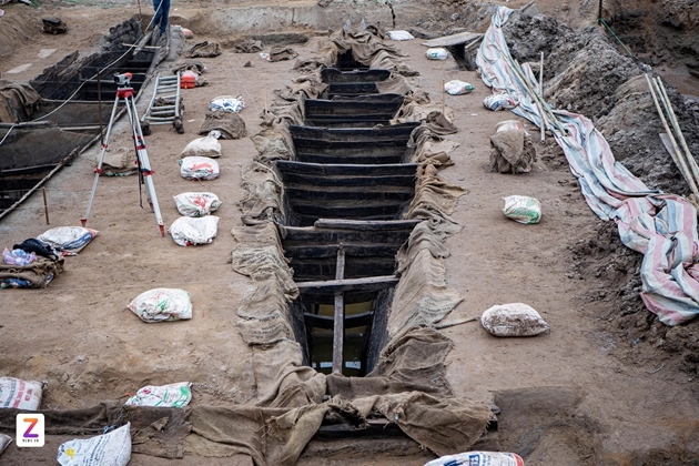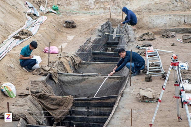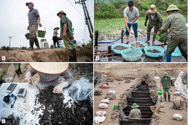 Ngành văn hóa Bắc Ninh đã mời chuyên gia từ Viện Khảo cổ học, Hội Khảo cổ học Việt Nam, Viện Sử học, Bảo tàng Lịch sử quốc gia, Trung tâm Nghiên cứu Tiền sử Đông Nam Á, Hiệp hội đóng tàu Việt Nam đến khảo cứu về di vật. Theo nhiều nguồn tin, đôi thuyền cổ có niên đại 1.800-1.600 năm, là hiện vật thời Đông Sơn muộn. Ảnh: Châu Sa.