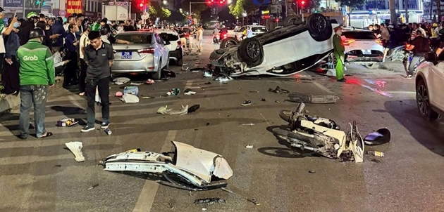 Khi đến khu vực nút giao, chiếc xe bất ngờ tăng tốc, va chạm với một ô tô mang BKS 30L-665.XX. Sau cú va chạm ban đầu, phương tiện này tiếp tục lao sang làn đường ngược chiều, đâm vào thêm 3 ô tô và 1 xe máy khác trước khi bị lật ngửa giữa đường.