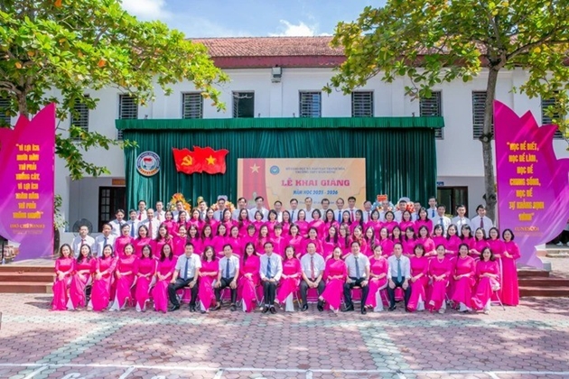 | Tập thể các thầy cô giáo nhà trường những người tận tụy gieo mầm tri thức, dẫn dắt các thế hệ học sinh trưởng thành (ảnh Thu Hương) |