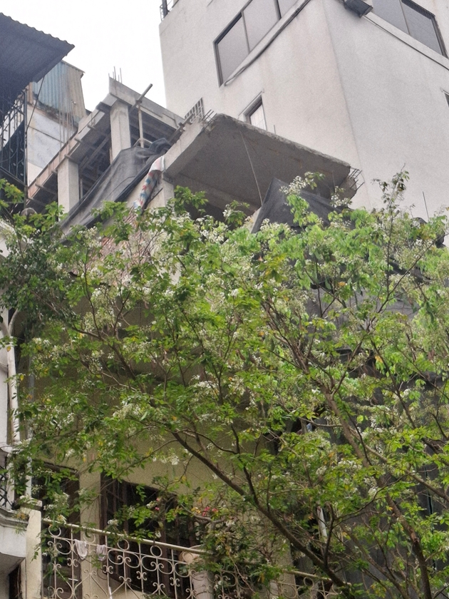 | Phần trên cùng của ngôi nhà số 43 Hàng Thùng vẫn đang để sắt chờ |