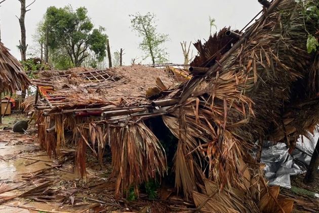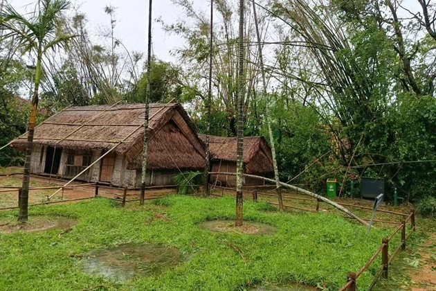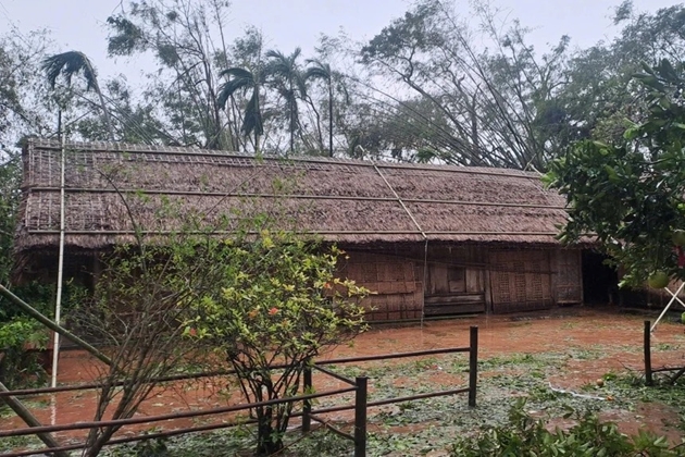 Khu vực nhà tranh 5 gian, nơi Bác Hồ cất tiếng khóc chào đời vẫn vững chãi sau khi bão số 10 quét qua |
