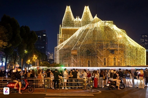 Sau lần lên đèn Giáng sinh đầu tiên vào ngày 29/11, khu vực xung quanh nhà thờ Đức Bà (phường Sài Gòn, TP.HCM) trở nên đông đúc mỗi ngày. Các tuyến đường chính dẫn về khu vực này cũng nhanh chóng ùn tắc.